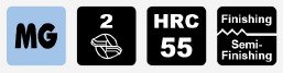Dvoubřitá zaoblovací fréza určená pro obrábění materiálů do tvrdosti 55 HRC. Speciální konstrukce rádiusu umožňuje srážení hran v rozsahu R0,5 až R6,0, což zajišťuje univerzální použití při dokončovacích operacích.