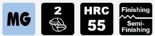 Dvoubřitá zaoblovací micro fréza určená pro obrábění materiálů do tvrdosti 55 HRC. Speciální konstrukce rádiusu umožňuje srážení hran v rozsahu R0,5 až R6,0, což zajišťuje univerzální použití při dokončovacích operacích.