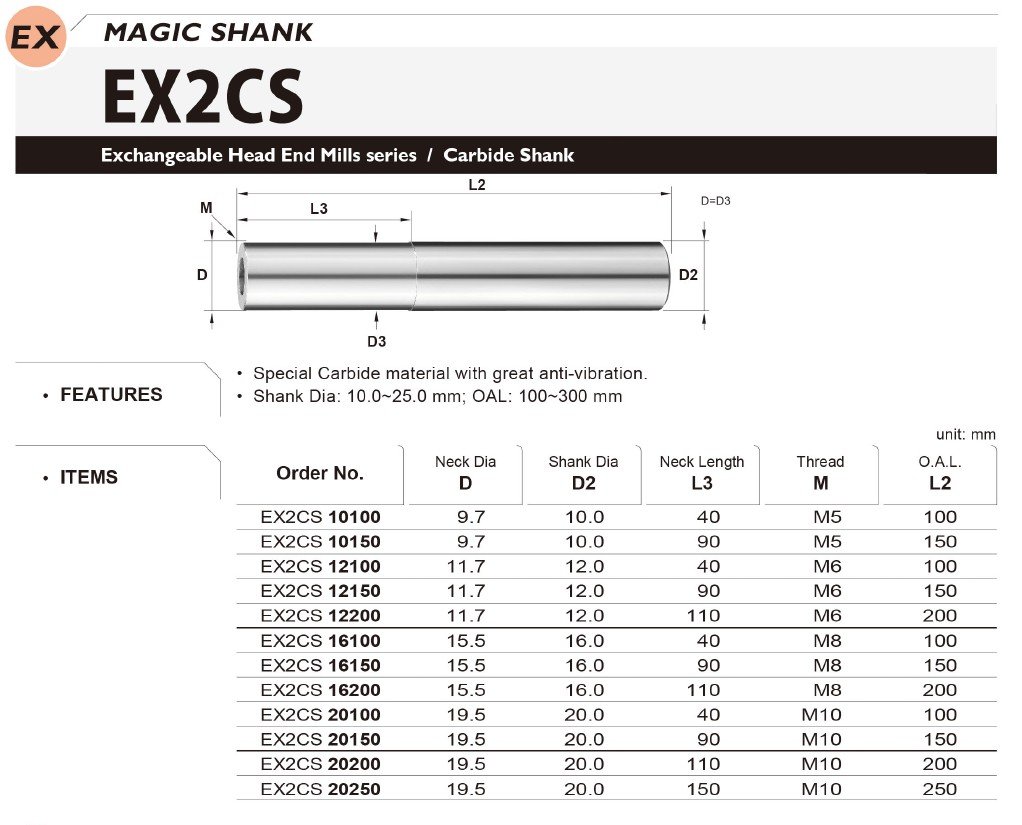 Průměr stopky je v rozmezí 10,0 až 25,0 mm a celková délka (OAL) se pohybuje mezi 100 a 300 mm, což umožňuje široké využití při různých aplikacích.