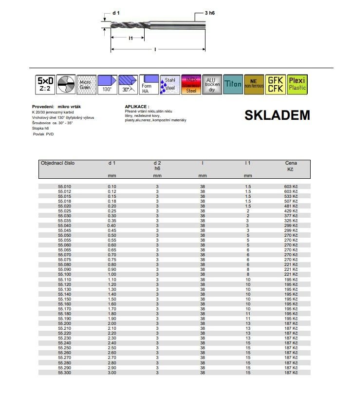 z jemnozrnného karbidu, který se vyznačuje svou vysokou tvrdostí a odolností. Vrtáky jsou