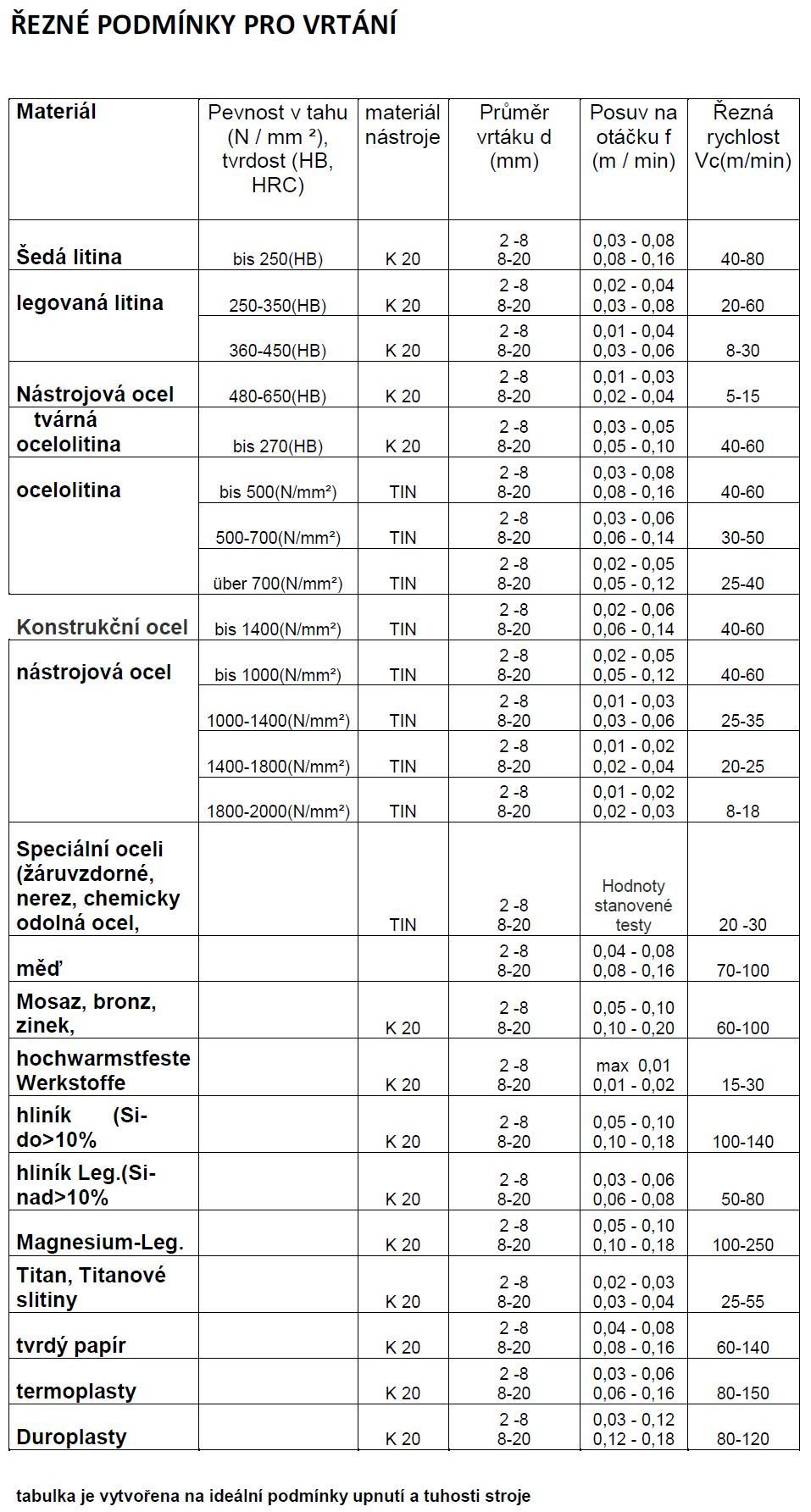 Přesné vrtání niklu, slitin niklu litiny, neželezné kovy, plasty, alu. Více