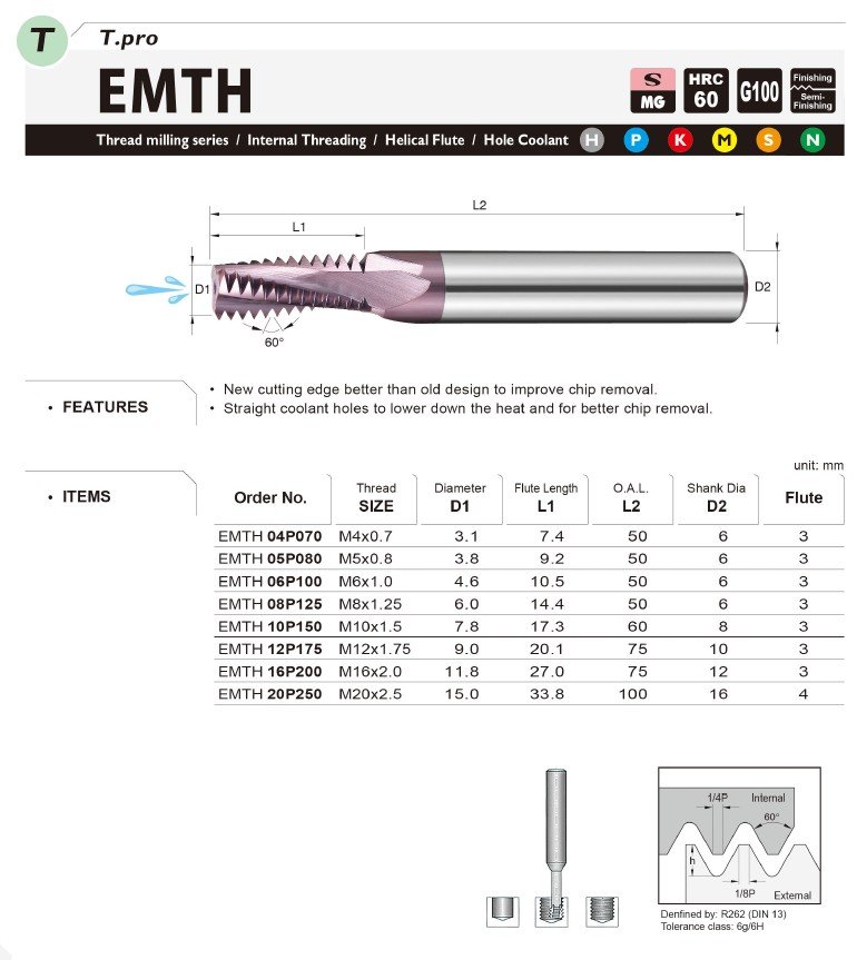 TK závitovací fréza EMTH06P100 - M6x1,0