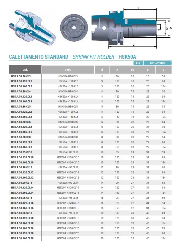 Tepelný upínač HSK50A EXTRA dlouhý H160 pr.14