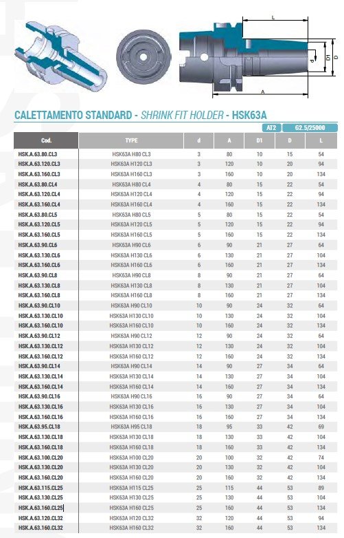 Tepelný upínač HSK63A dlouhý H130 pr.6