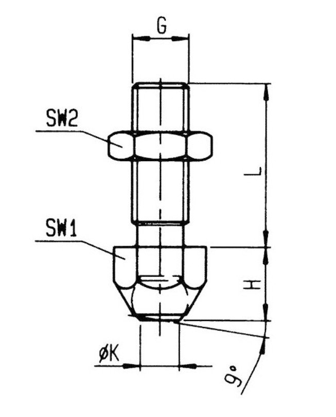 Tlačný šroub s hladkou kuličkou a maticí ISO 4035. Kulička je vyrobena z kalené ložiskové oceli a zajišťuje přesný a šetrný dosed. Tělo šroubu je z zušlechtěné oceli pro vysokou pevnost a dlouhou životnost.