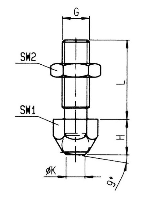 Tlačný šroub s kuličkou s rýhovaným tělem a maticí dle ISO 4035. Kulička s plochým čelem je vyrobena z kalené ložiskové oceli, tělo ze zušlechtěné oceli. Spolehlivé řešení pro přesné a odolné upínání.