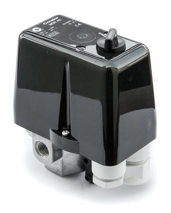 Kvalitní tlakový spínač německého výrobce Condor s nastavitelným vypínacím tlakem.