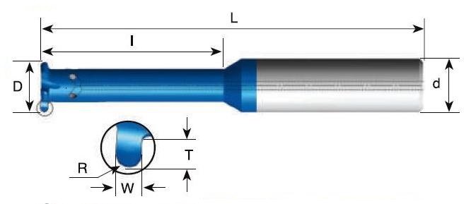 Tvrdokovová fréza 12x1,8 R0,9 tvar T pro vnější a vniřní drážkování MG1212D30R09