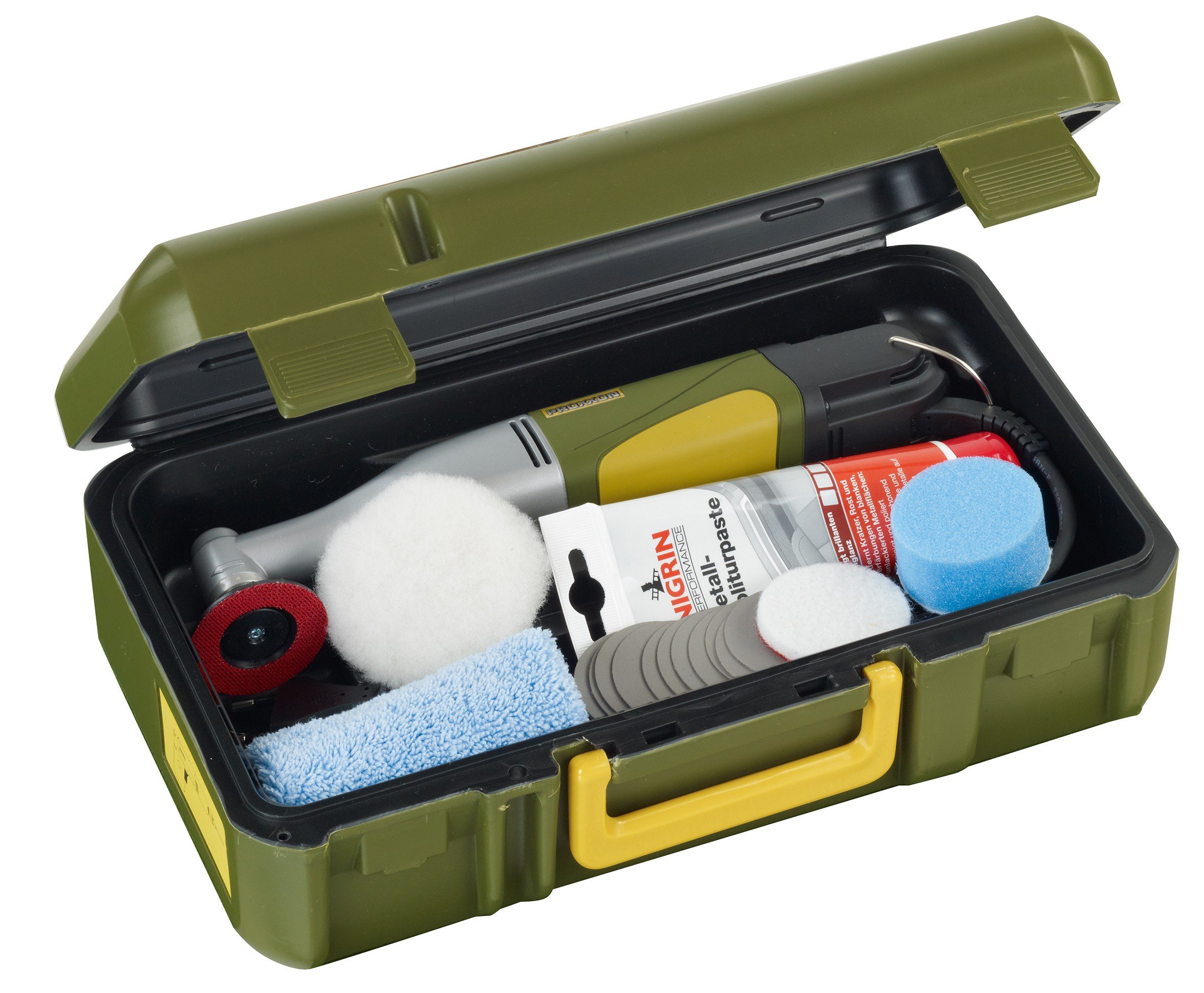 Vhodná k dolešťování povrchů i na špatně přístupných místech, na lesklé plochy, čištění, odrezování, pro rozlešťování po lakování atd. Vyvážený tichý speciální motor.