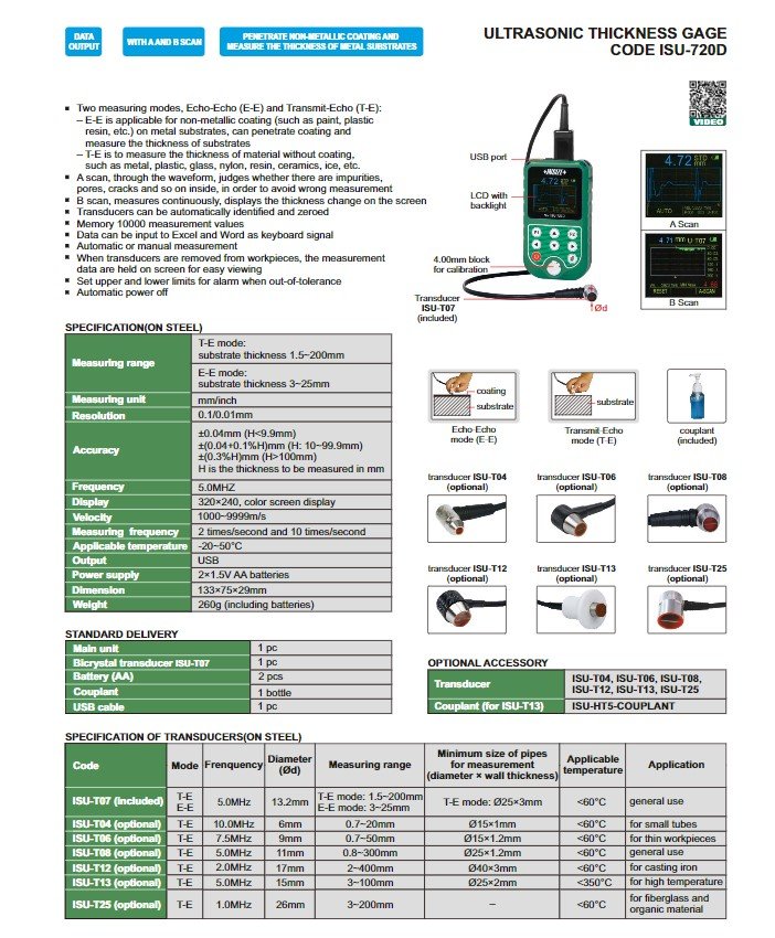 Ultrazvukový přístroj pro měření tloušťky stěny INSIZE ISU-720D (s přenosem dat)
