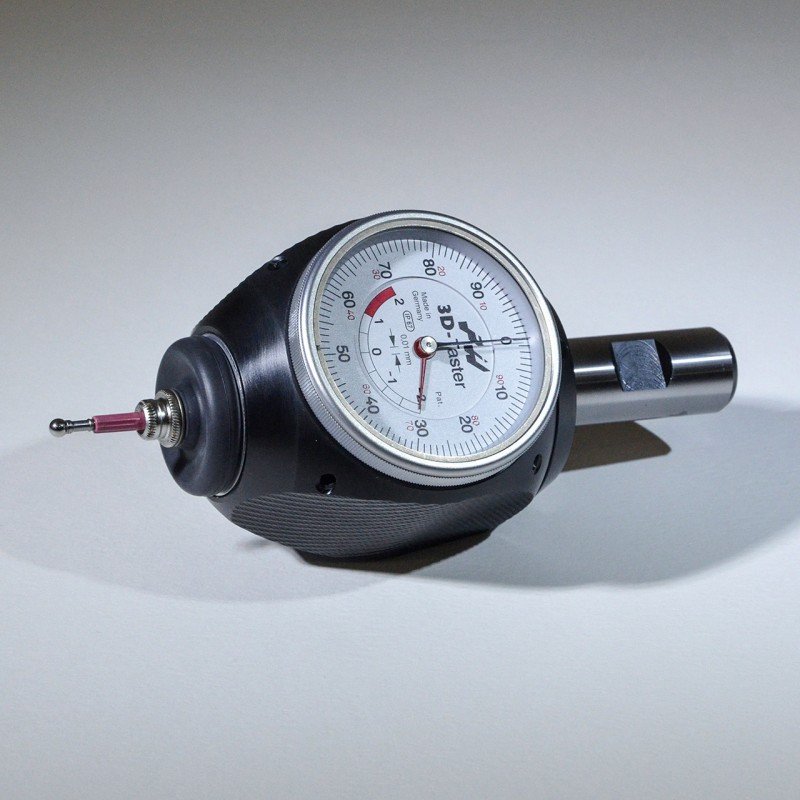 Univerzální analogový 3D taster: pro ruční měření v osách X, Y, Z dodáváno s krátkým dotekem o průměru 4 mm s nastavitelnou přesností obvodové házivosti s válcovou stopkou o průměru 20 mm přesnost měření 0,01 mm stupeň krytí tasteru IP67 nejmenší jednotky měření 0,01 mm celková… Více