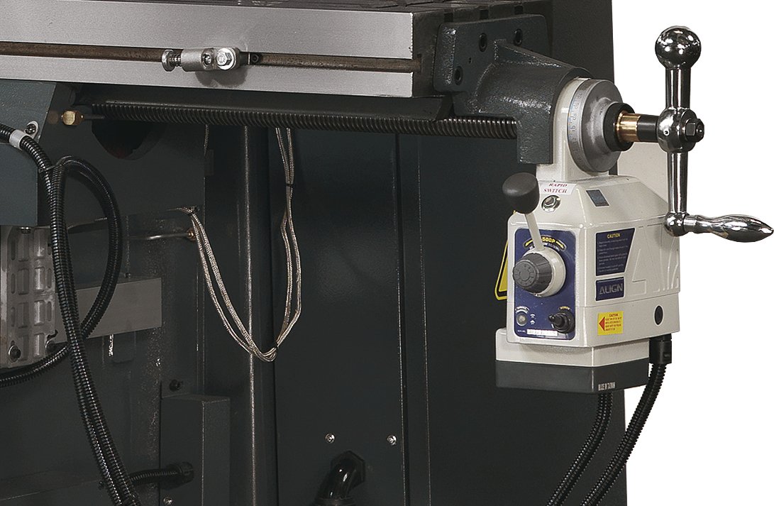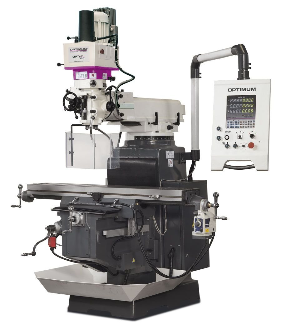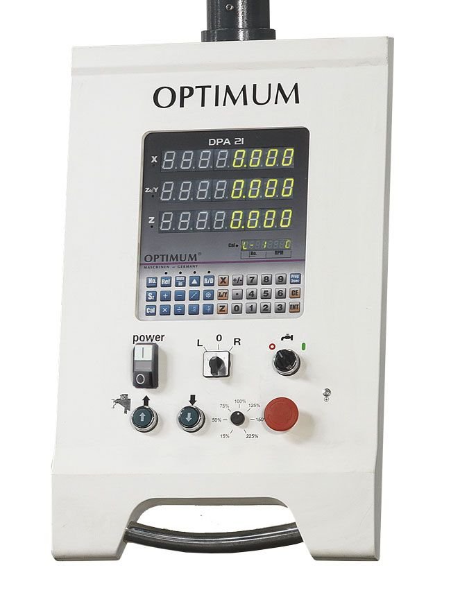 Univerzální vrtačko-frézka v masivním provedení pro profesionální použití. Plynulá regulace otáček pomocí frekvenčního měniče (Made in Germany) a digitální odměřování polohy DPA 21.