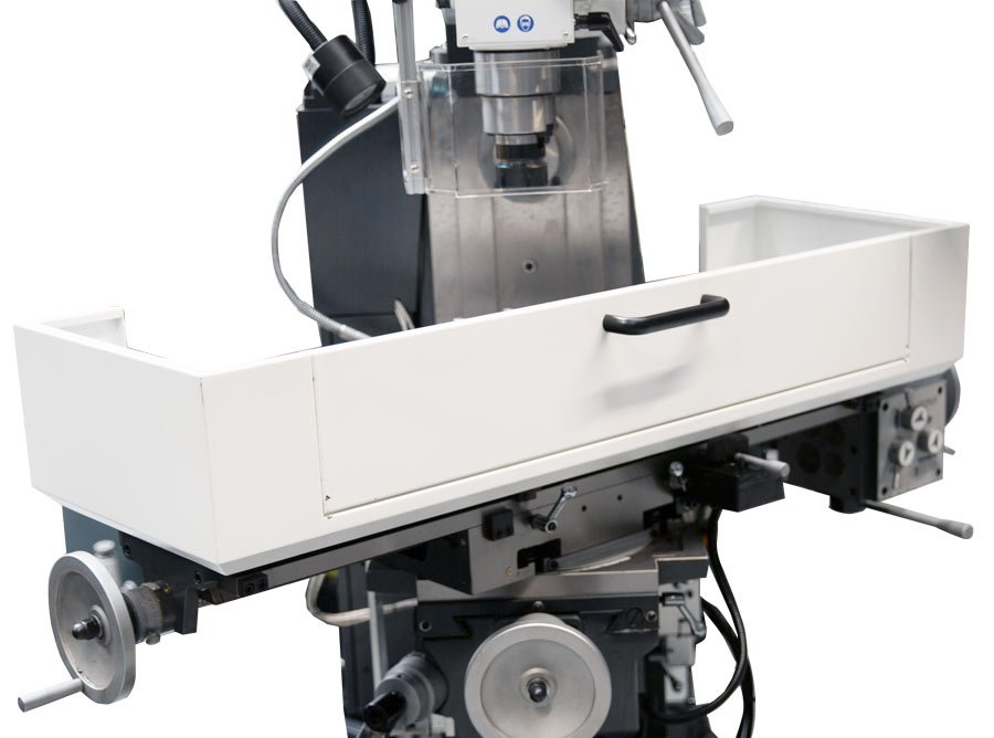 - Možnost práce v horizontální poloze s podpěrou a upínačem pro kotoučovou frézu