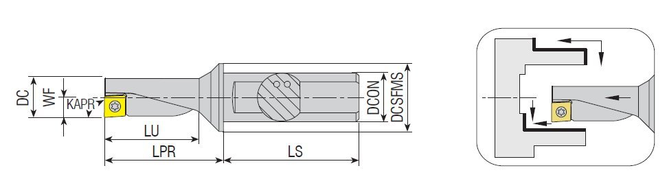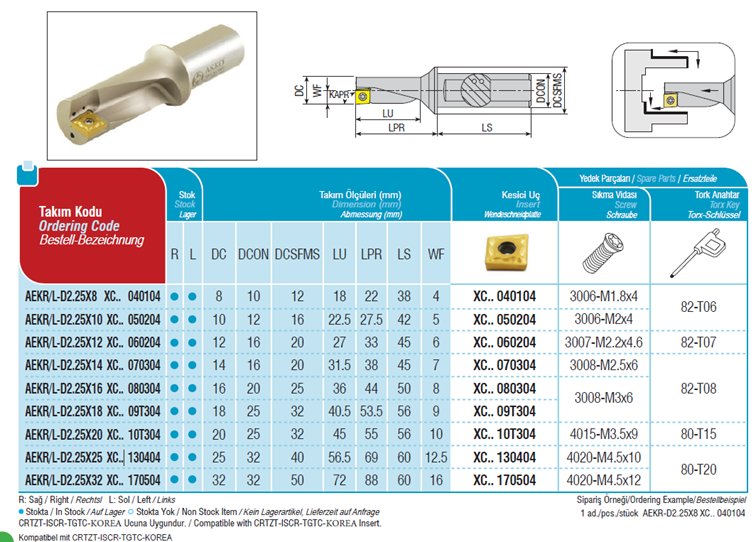 Univerzální nástroj AEKL-D2,25X8 XC..040104 pro vrtání, vnitřní a vnější soustružení