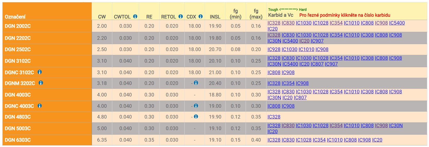 | Druh obráběného materiálu | Litina, Nerez, Ocel, Tvrdé materiály, Žárupevná slitina |