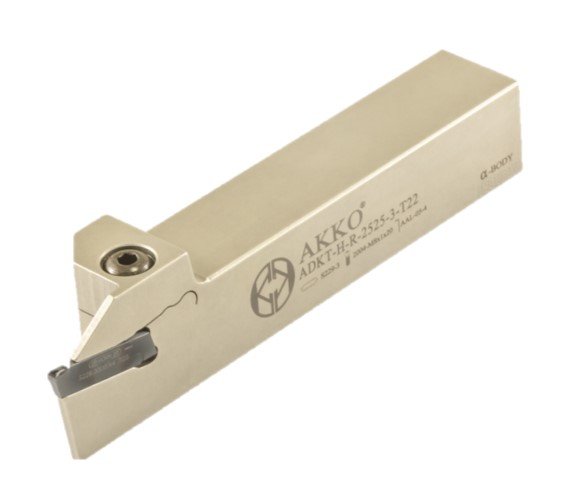 Tělo nástroje je vyrobeno z kvalitní oceli. VBD je upevněna standardním způsobem shora pomocí šroubku což zajišťuje stabilní upnutí řezné destičky. Pro nože AKKO jsou používány kované upínky a šroubky z produkce Švýcarského výrobce SFS. Tyto držáky jsou opatřeny povlakem stříbrné barvy, který zajišťuje korozivzdornost a dostatečnou odolnost proti vnějším vlivům.