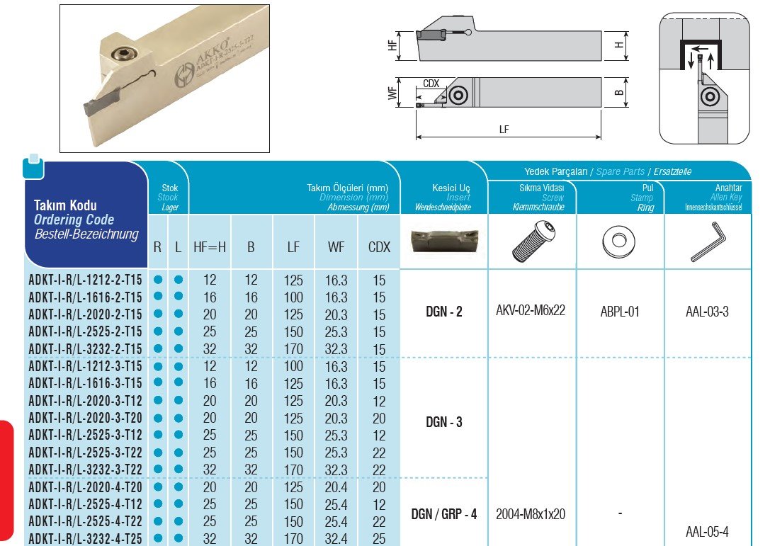 Tělo nástroje je vyrobeno z kvalitní oceli. VBD je upevněna standardním způsobem shora pomocí šroubku což zajišťuje stabilní upnutí řezné destičky. Pro nože AKKO jsou používány kované upínky a šroubky z produkce Švýcarského výrobce SFS. Tyto držáky jsou opatřeny povlakem stříbrné… Více
