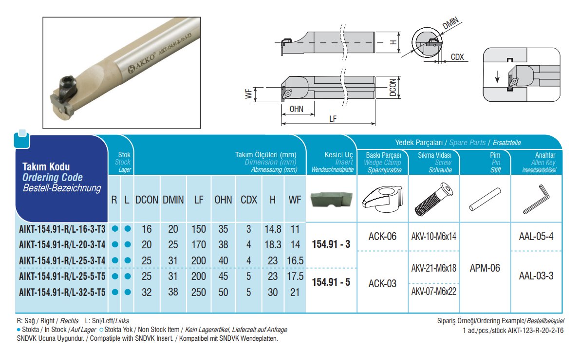 Tělo nástroje je vyrobeno z kvalitní oceli. VBD je upevněna standardním způsobem shora pomocí šroubku což zajišťuje stabilní upnutí řezné destičky. Pro nože AKKO jsou používány kované upínky a šroubky z produkce Švýcarského výrobce SFS. Tyto držáky jsou opatřeny povlakem stříbrné… Více
