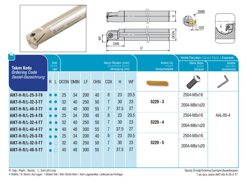 Tělo nástroje je vyrobeno z kvalitní oceli. VBD je upevněna standardním způsobem shora pomocí šroubku což zajišťuje stabilní upnutí řezné destičky. Pro nože AKKO jsou používány kované upínky a šroubky z produkce Švýcarského výrobce SFS. Tyto držáky jsou opatřeny povlakem stříbrné… Více