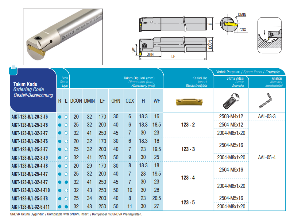 Upichovací nůž vnitřní - levý 2mm, AKKO AIKT-123-L-25-2-T6