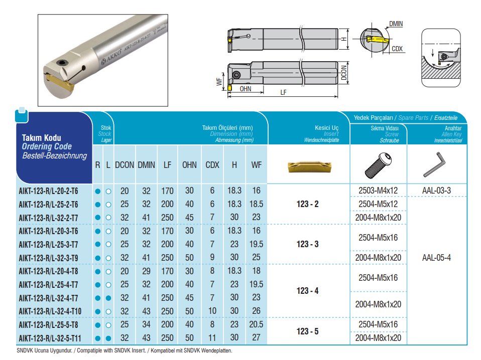 Upichovací nůž vnitřní - levý 3mm, AKKO AIKT-123-L-25-3-T7