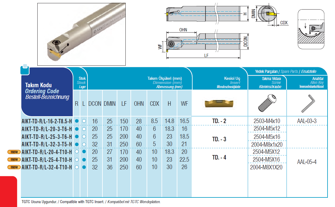 Tělo nástroje je vyrobeno z kvalitní oceli. VBD je upevněna standardním způsobem shora pomocí šroubku což zajišťuje stabilní upnutí řezné destičky. Pro nože AKKO jsou používány kované upínky a šroubky z produkce Švýcarského výrobce SFS. Tyto držáky jsou opatřeny povlakem stříbrné… Více