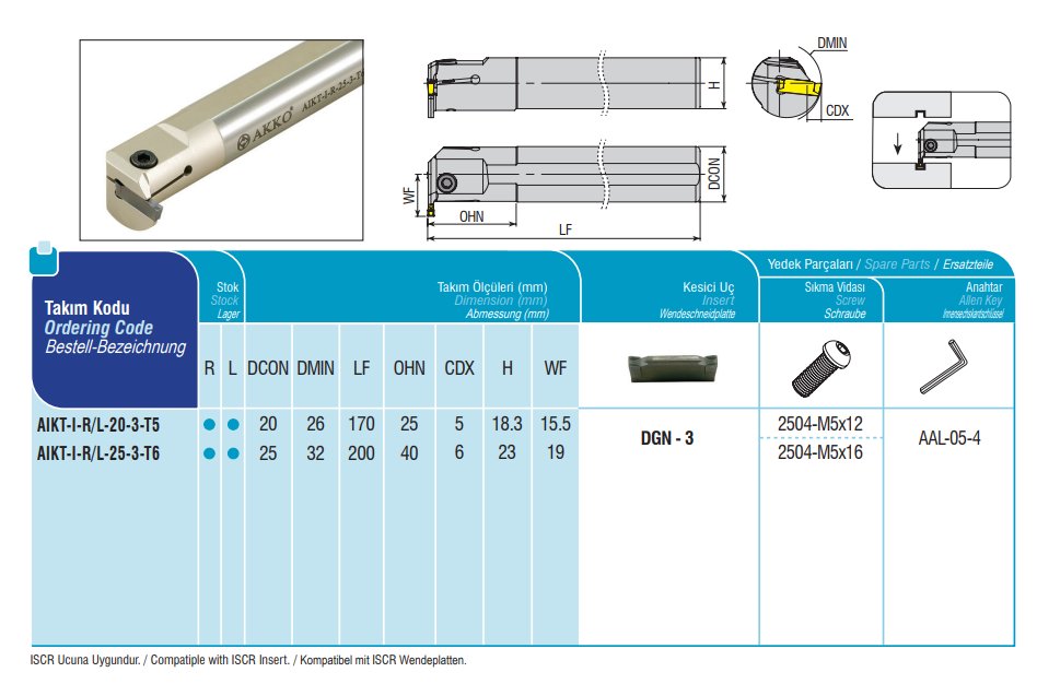 Upichovací nůž vnitřní - pravý 3mm, AKKO AIKT-I-R-20-3-T5