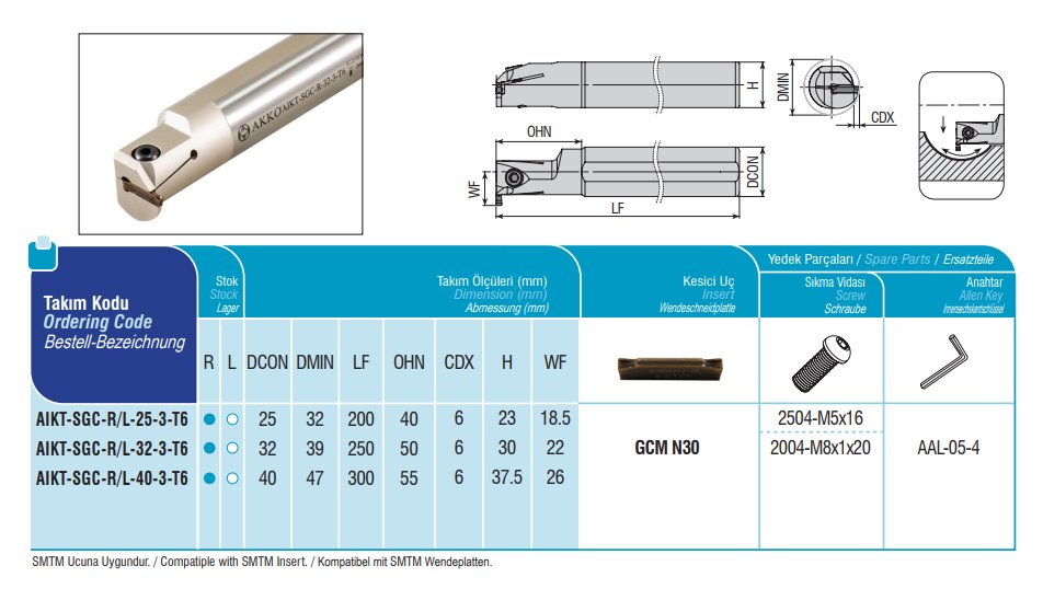 Upichovací nůž vnitřní - pravý 3mm, AKKO AIKT-SGC-R-40-3-T6