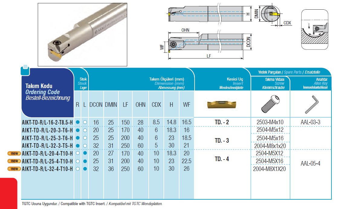 Upichovací nůž vnitřní - pravý 3mm, AKKO AIKT-TD-R-32-3-T5-H