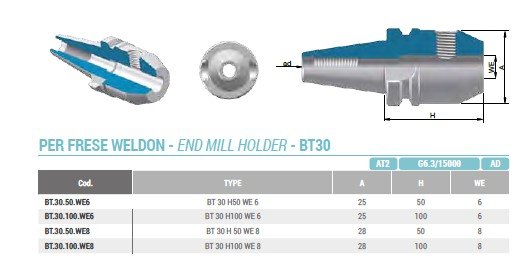 Upínač WELDON BT30 (AD) prodloužený H100 WE10