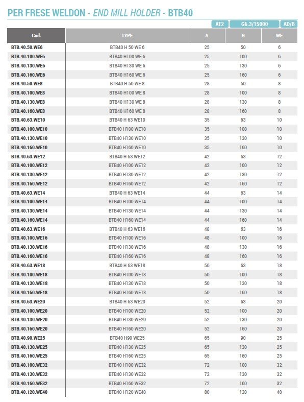 Upínač WELDON BT40 (AD/B) krátký H65 WE14