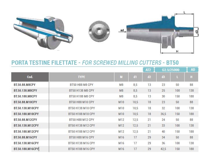 Upínač pro frézy se závitem BT50 (AD/B) krátký H88 M12