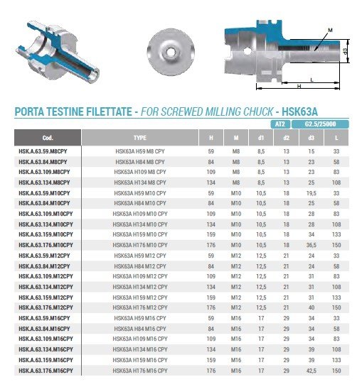 Upínač pro frézy se závitem HSK63A EXTRA dlouhý H176 M10