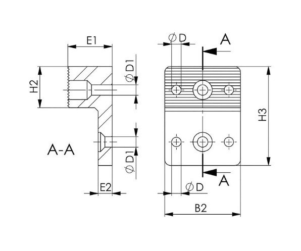 Upínací čelist vyrobená z cementační oceli, nitridovaná pro zvýšenou odolnost proti opotřebení, vybavená upevňovacím šroubem M8. Technická specifikace: Velikost: 38 B2: 90 D: 8,1 D1: 9 E1: 38 E2:… Více