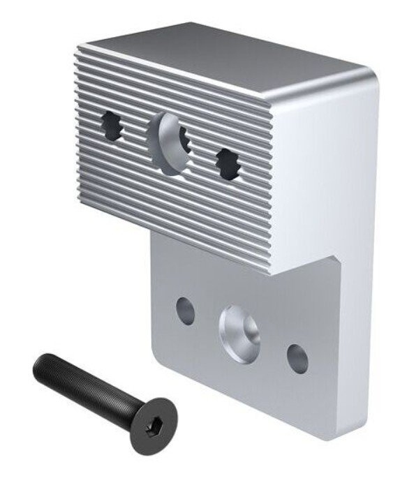 Upínací čelist vyrobená z cementační oceli, nitridovaná pro zvýšenou odolnost proti opotřebení, vybavená upevňovacím šroubem M8.