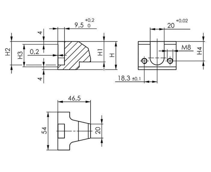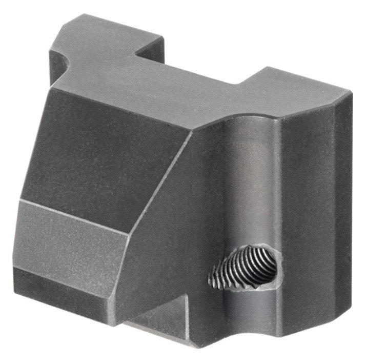 Upínací čelist z zušlechtěné oceli, nitridovaná a černěná. Horní vyměnitelná verze, upevňovaná pomocí válcových šroubů ISO 4762-M8.