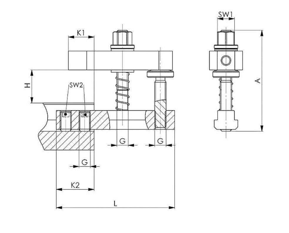 Upínací jednotka pro upínání mimo nástrojový stůl, vyrobená z temperované oceli. Díky plynule nastavitelnému provedení umožňuje flexibilní a spolehlivé upnutí v různých pracovních podmínkách.