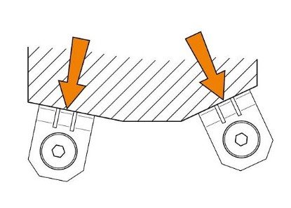 Upínací prvek (1 pevný doraz) umožňuje, aby obrobek ležel v rovině s dorazy.