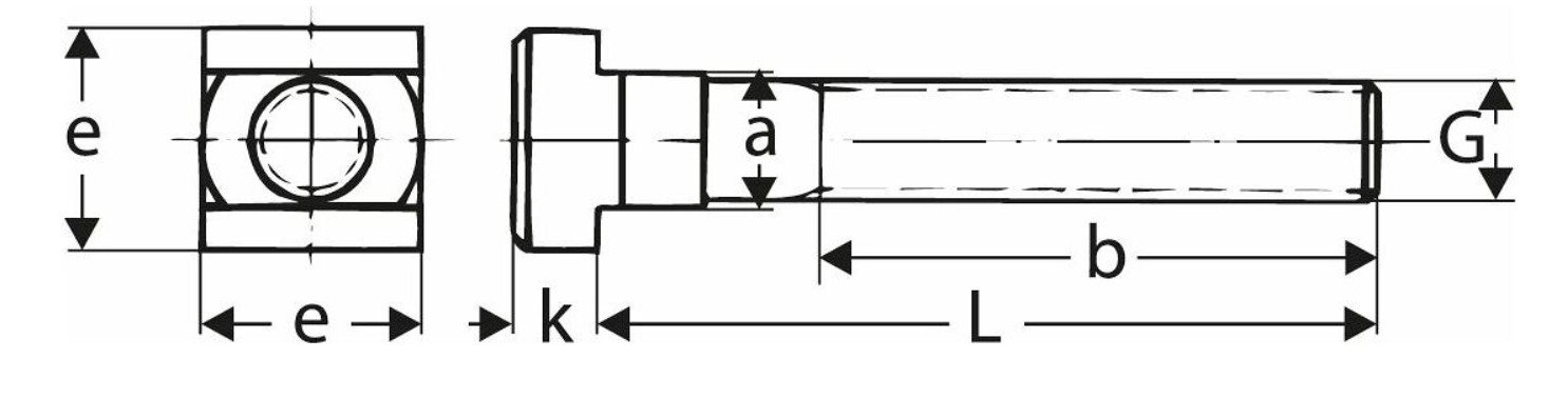 Šrouby do T-drážek, kované s vyčištěným vedením T-drážky a válcovaným závitem. Označené logem AMF a třídou pevnosti, v provedení M6–M12 se zušlechtěním na pevnostní třídu 10.9 a M14–M42 na pevnostní třídu 8.8. Rozměry nejsou součástí normy DIN, avšak odpovídají podobným rozměrům dle DIN.