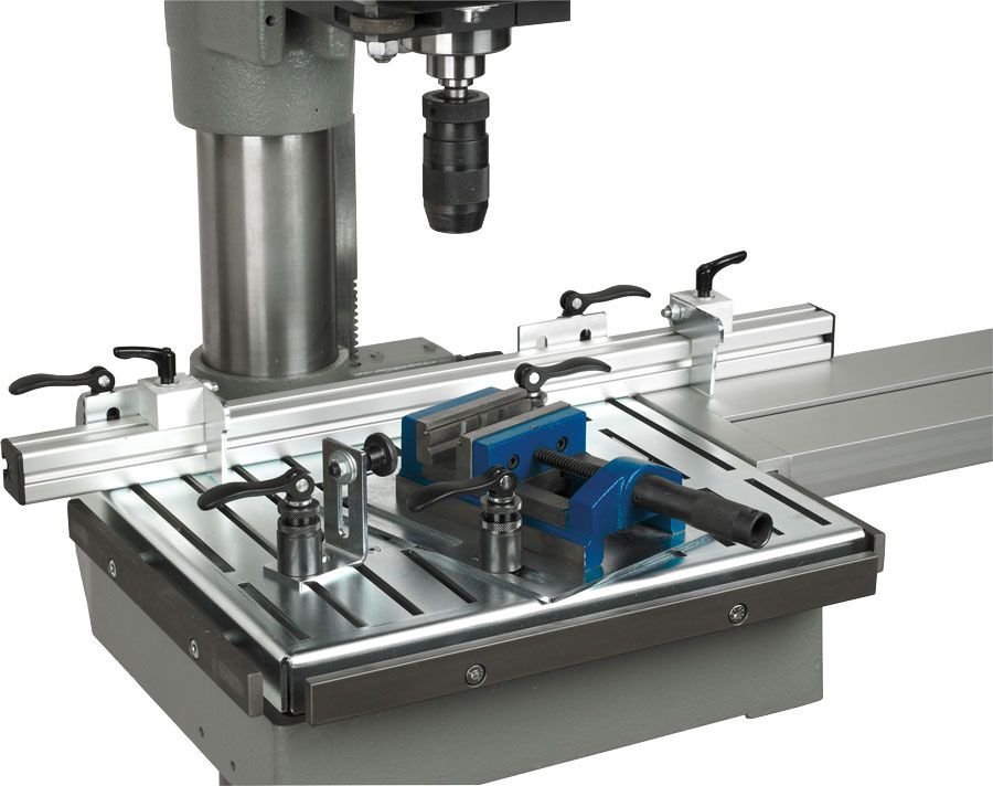 Upínací stůl s 720 mm dorazem, ideální pro každý pracovní stůl vrtačky nebo frézky.
