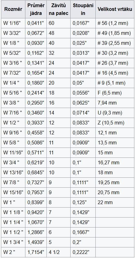 VBD CARBE 16IR 11 MC PK2550 - závit WITHWORTH vnitřní pravý