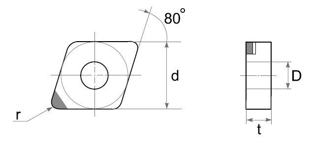 Doporučená aplikace :Výměnná břitová destička je určena pro lehké hrubování ocelí. Břitová destička je optřna otěruvzdorným povlakem na bázi AlTiN+TiSiN