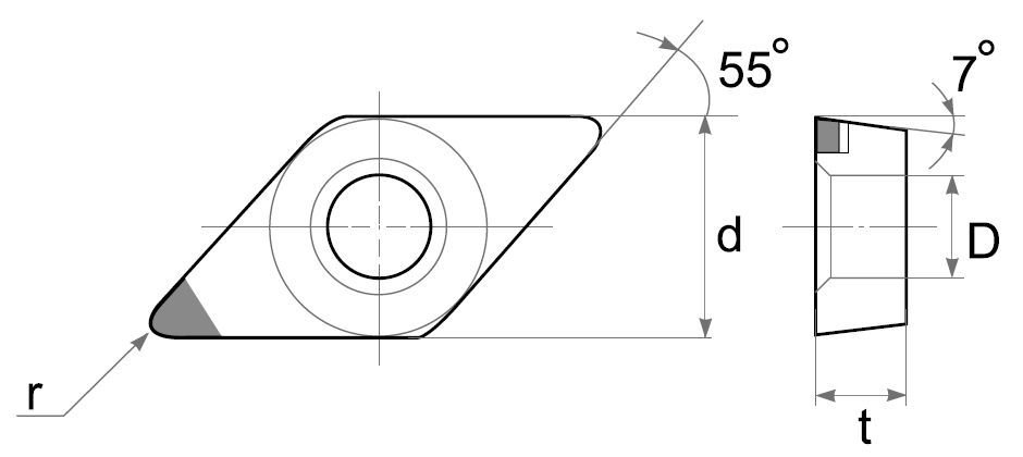 Doporučená aplikace :Výměnná břitová destička je určena pro lehké hrubování ocelí