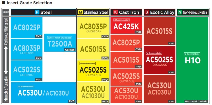 | Druh obráběného materiálu | Nerez, Žárupevná slitina |