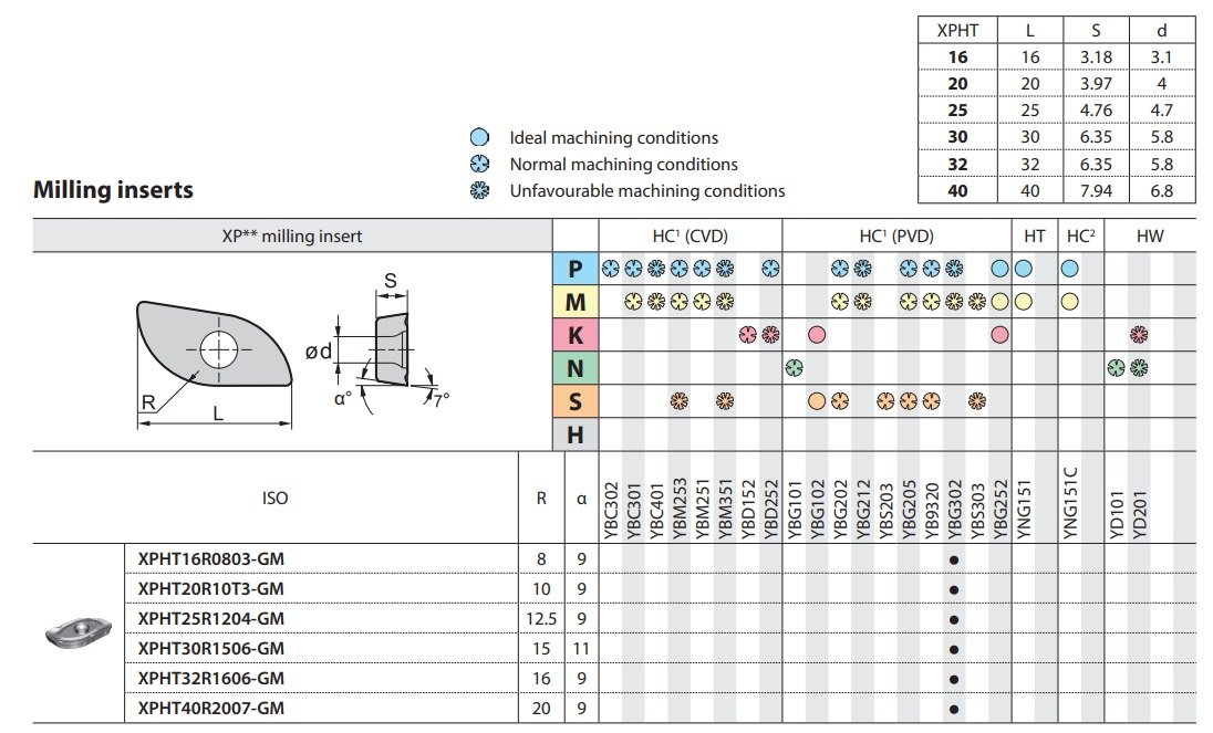 Výměnná břitová destička XPHT je primárně určena pro střední obrábění a hrubování v oceli a nerezi.