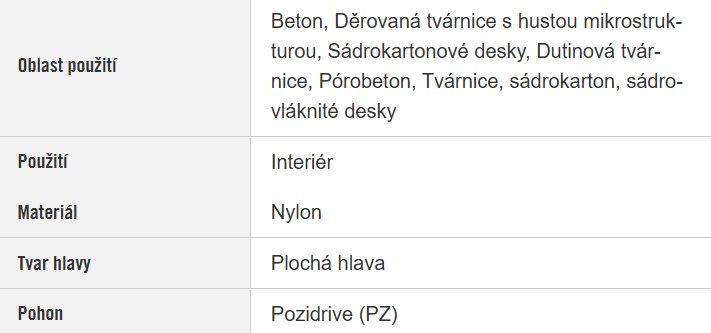 Univerzální hmoždinka FU 6x35 v 50-ti kusovém balení. Hmoždinka FU z kvalitního nylonu je vhodná téměř do všech stavebních materiálů. V děrovaných a deskových materiálech se zkroutí nebo deformuje a vytvoří bezpečný a únosný tvarový spoj. Hmoždinka je se šrouby do dřeva a dřevotřísky vhodná k upevnění svítidel, koutových lišt, lehkých poliček a nástěnných skříněk téměř do všech stavebních materiálů.