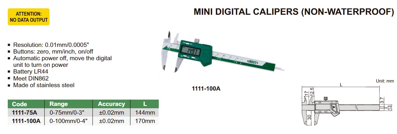 VÝPRODEJ INSIZE 1111-75A digitální posuvné měřítko MINI 0-75mm / 0-3\"