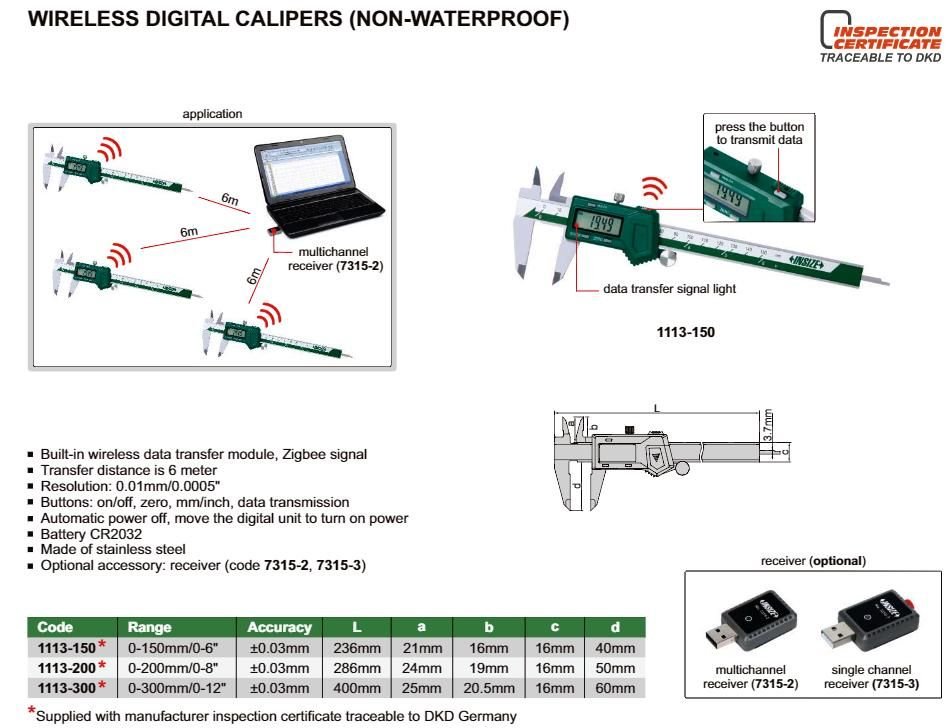VÝPRODEJ INSIZE 1113-150 digitální posuvné měřítko s bezdrátovým přenosem dat 0-150mm / 0-6"