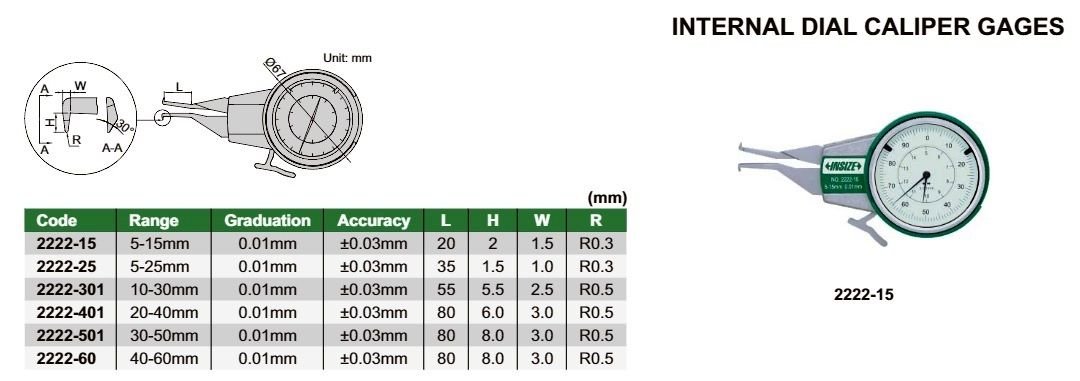 VÝPRODEJ INSIZE 2222-60 číselníkový úchylkoměr s měřicími rameny pro vnitřní měření 40-60mm / 0,01mm