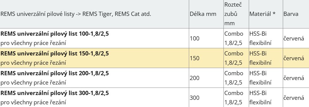 VÝPRODEJ - Pilový list REMS Tiger 150mm (cena za 1KS)